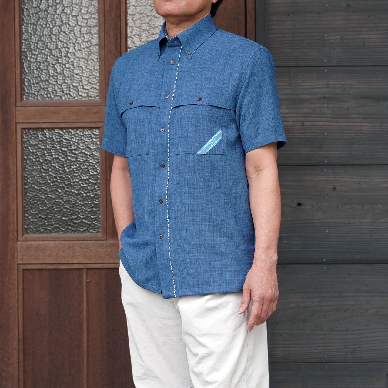 キャンバスダブルポケット ボタンダウン 半袖 シャツ [MINSAH] メンズ かりゆしウェア【送料無料】