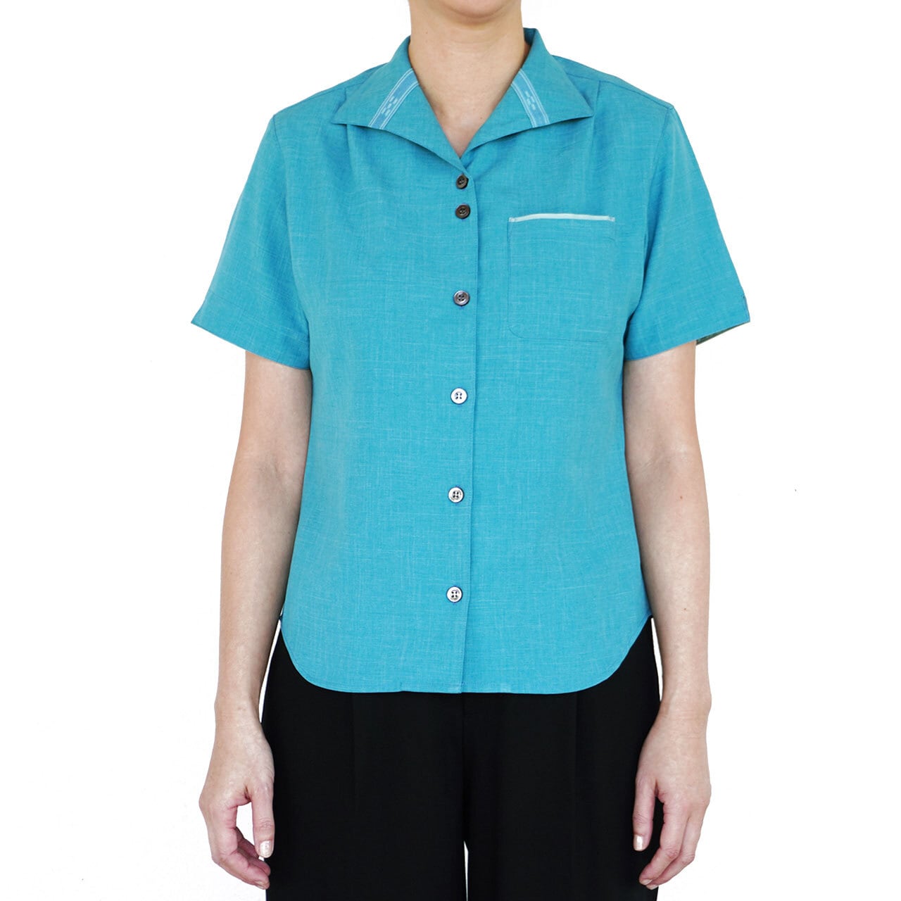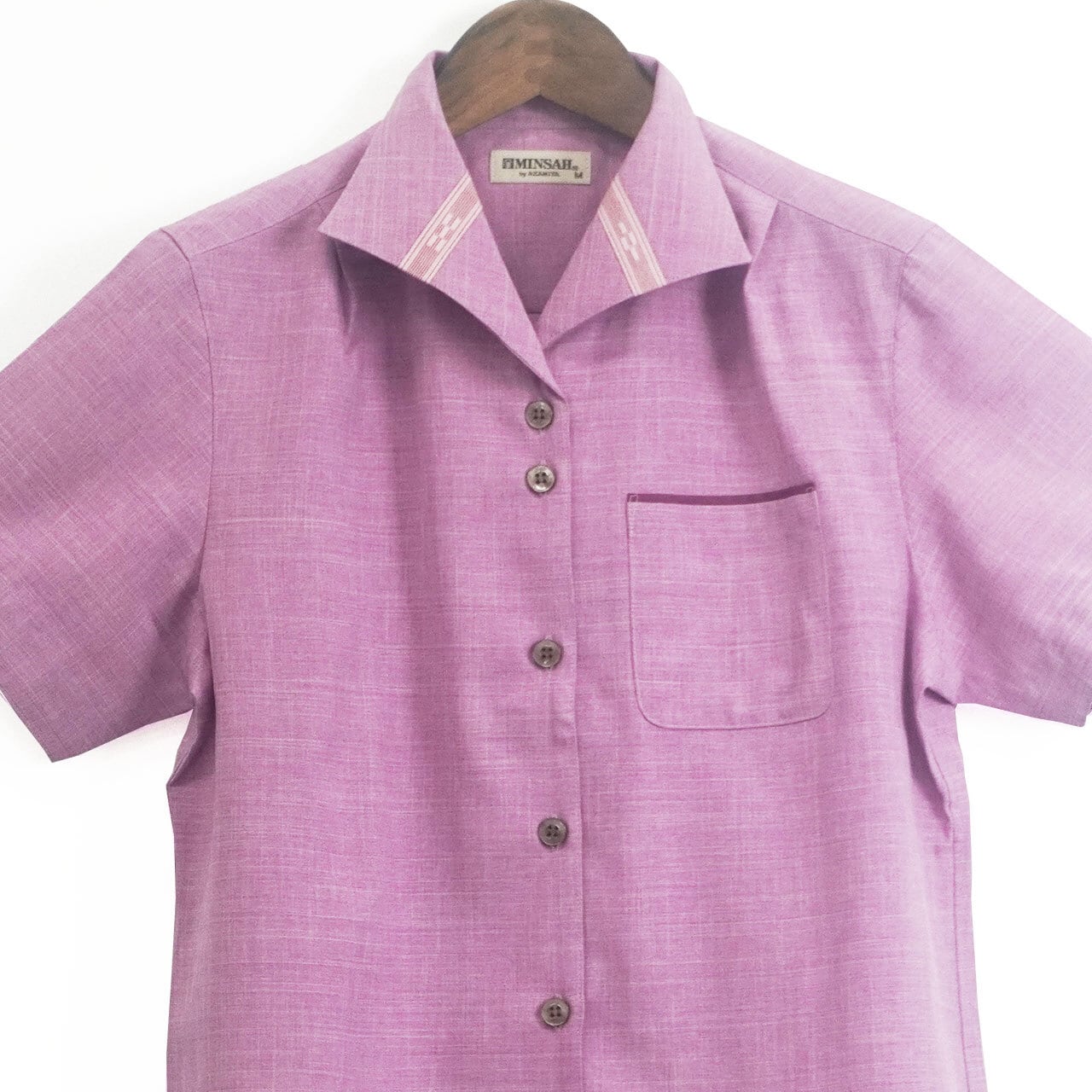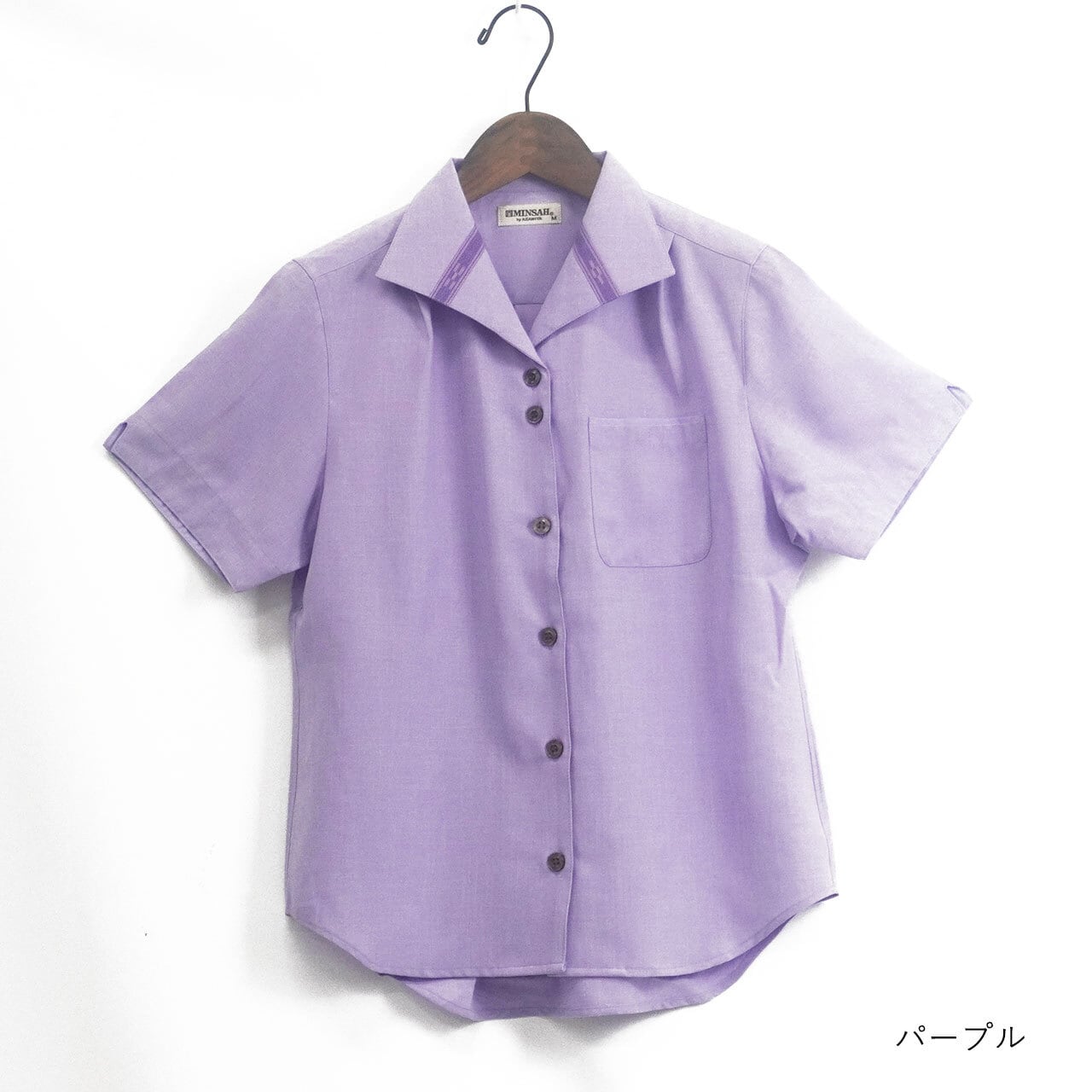 シャンブレーエステル イタリアンカラー シャツ [MINSAH] レディース【送料無料】