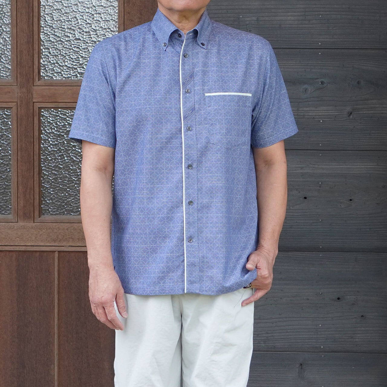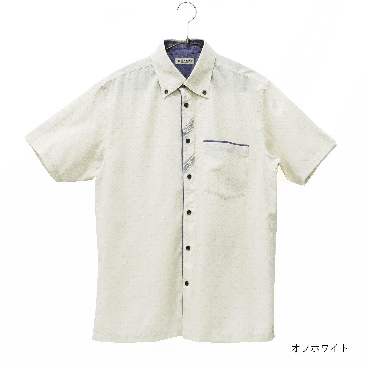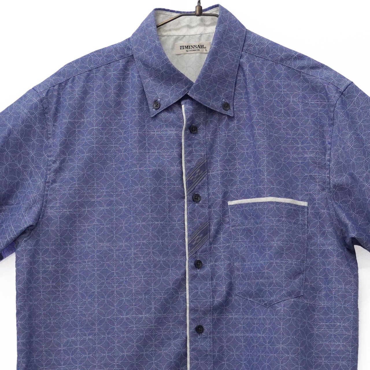 綿ポリ麻・七宝 ボタンダウン 半袖 シャツ [MINSAH] メンズ かりゆしウェア【送料無料】