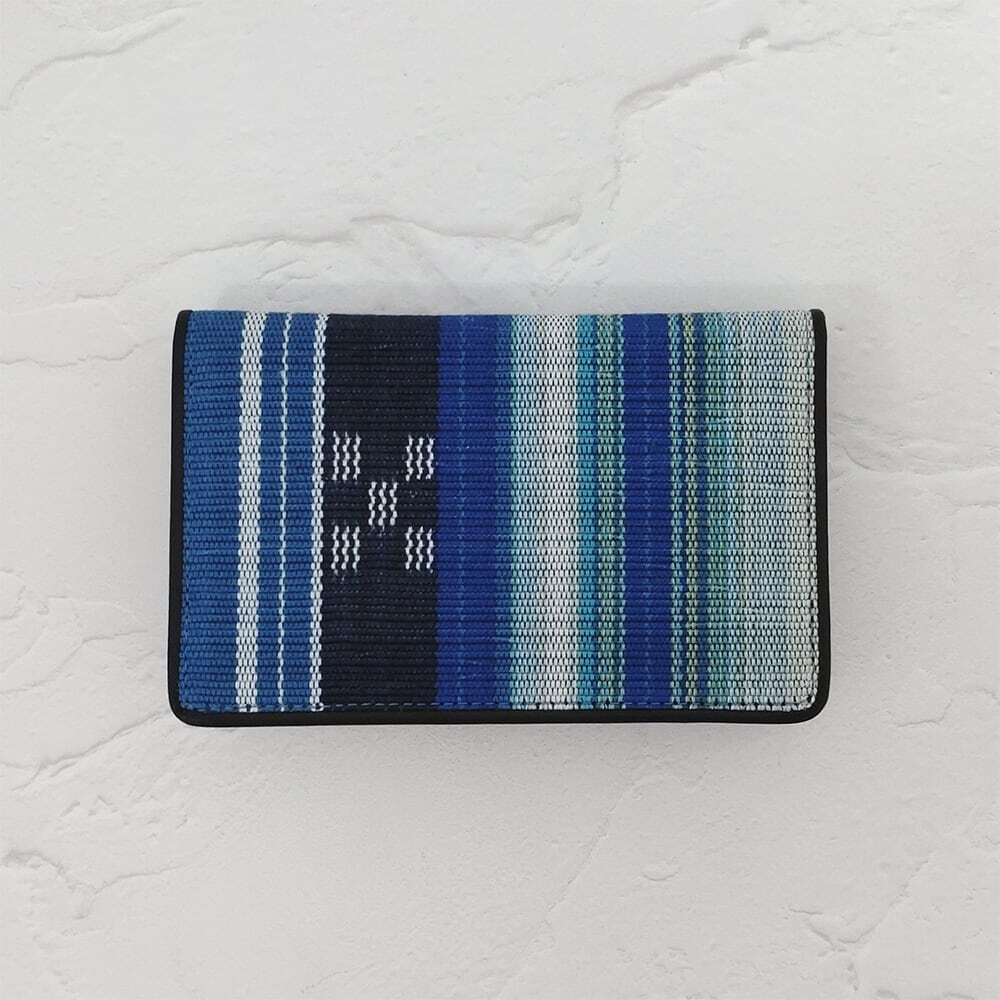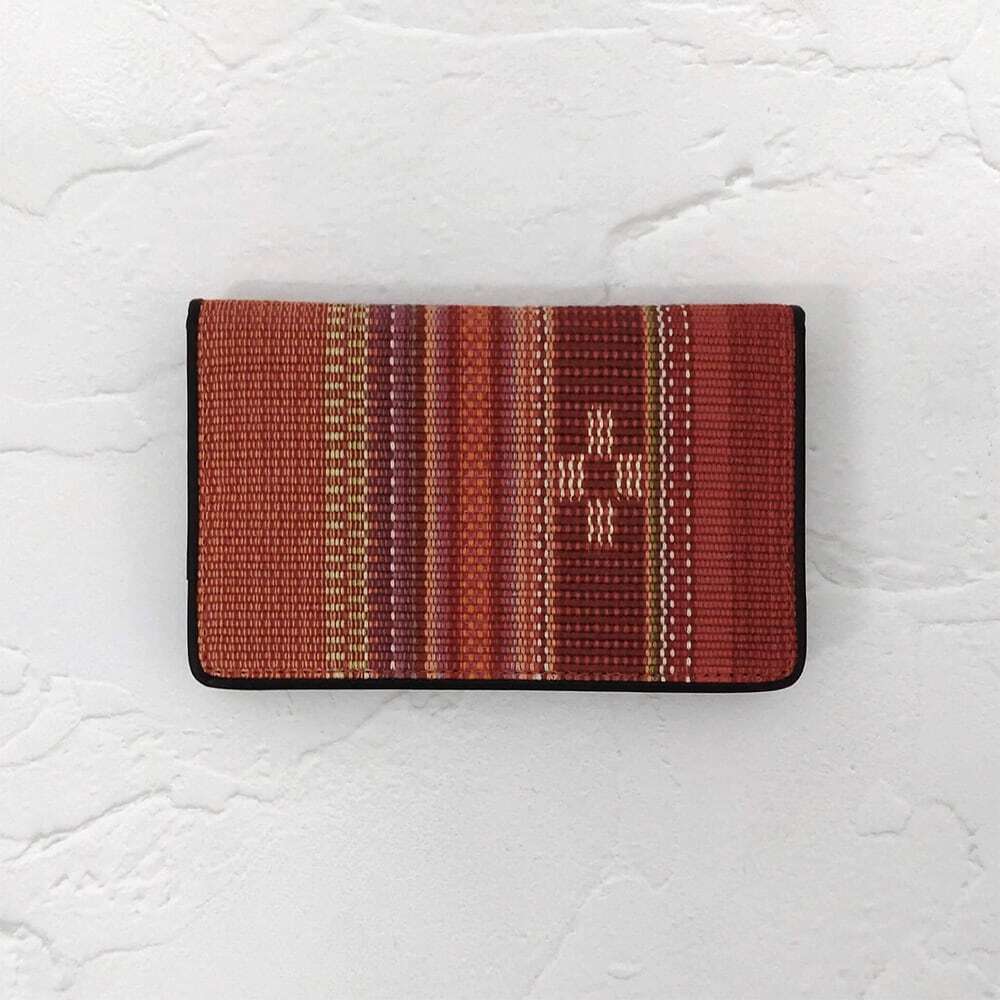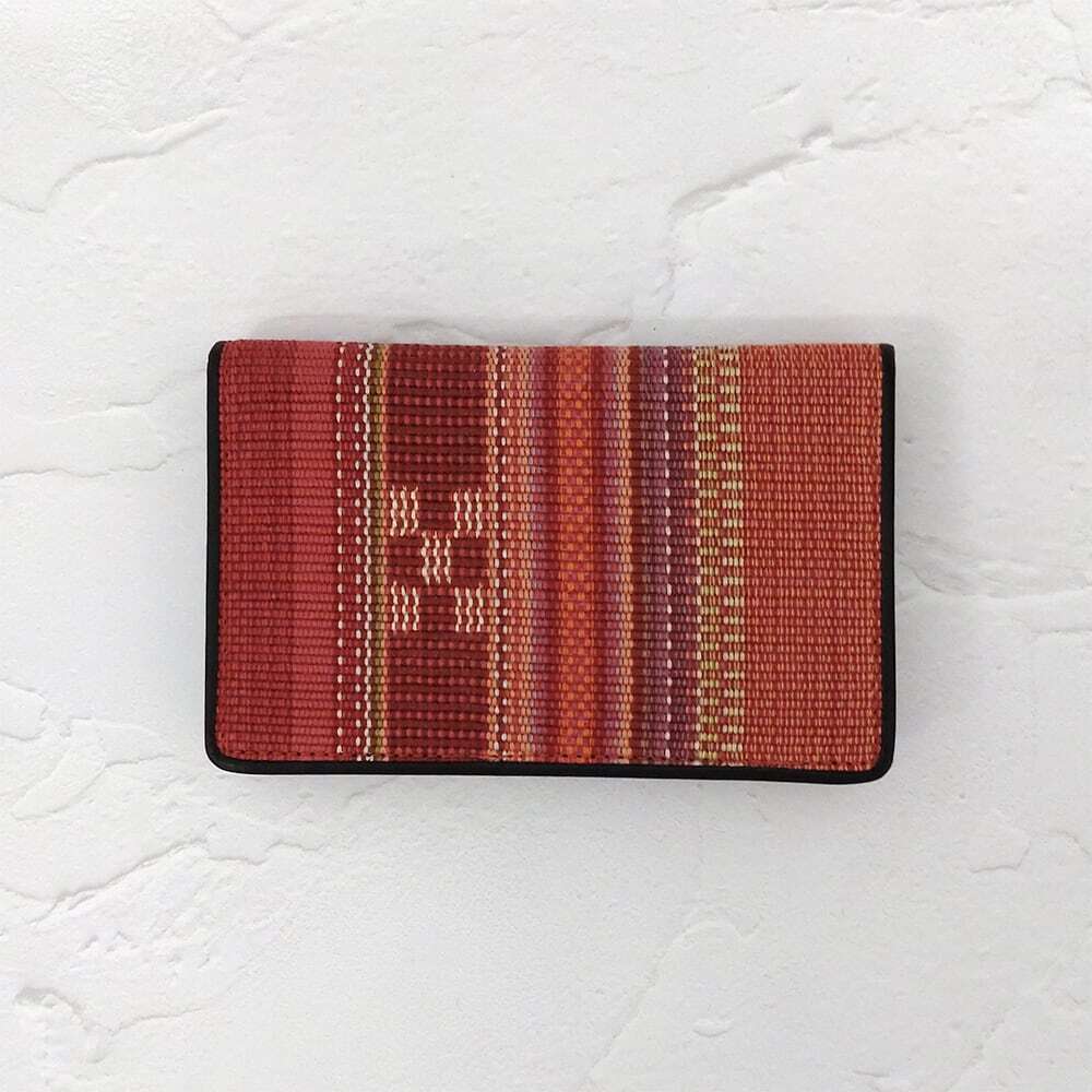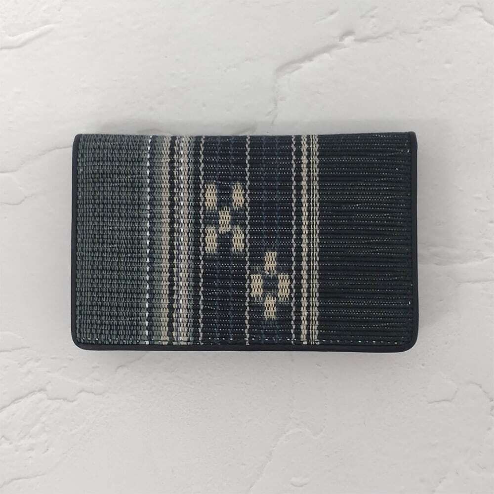 手織りの風合いが目を引く名刺入れ。カード入れが3箇所あり、うち1箇所にはマチが付いています。