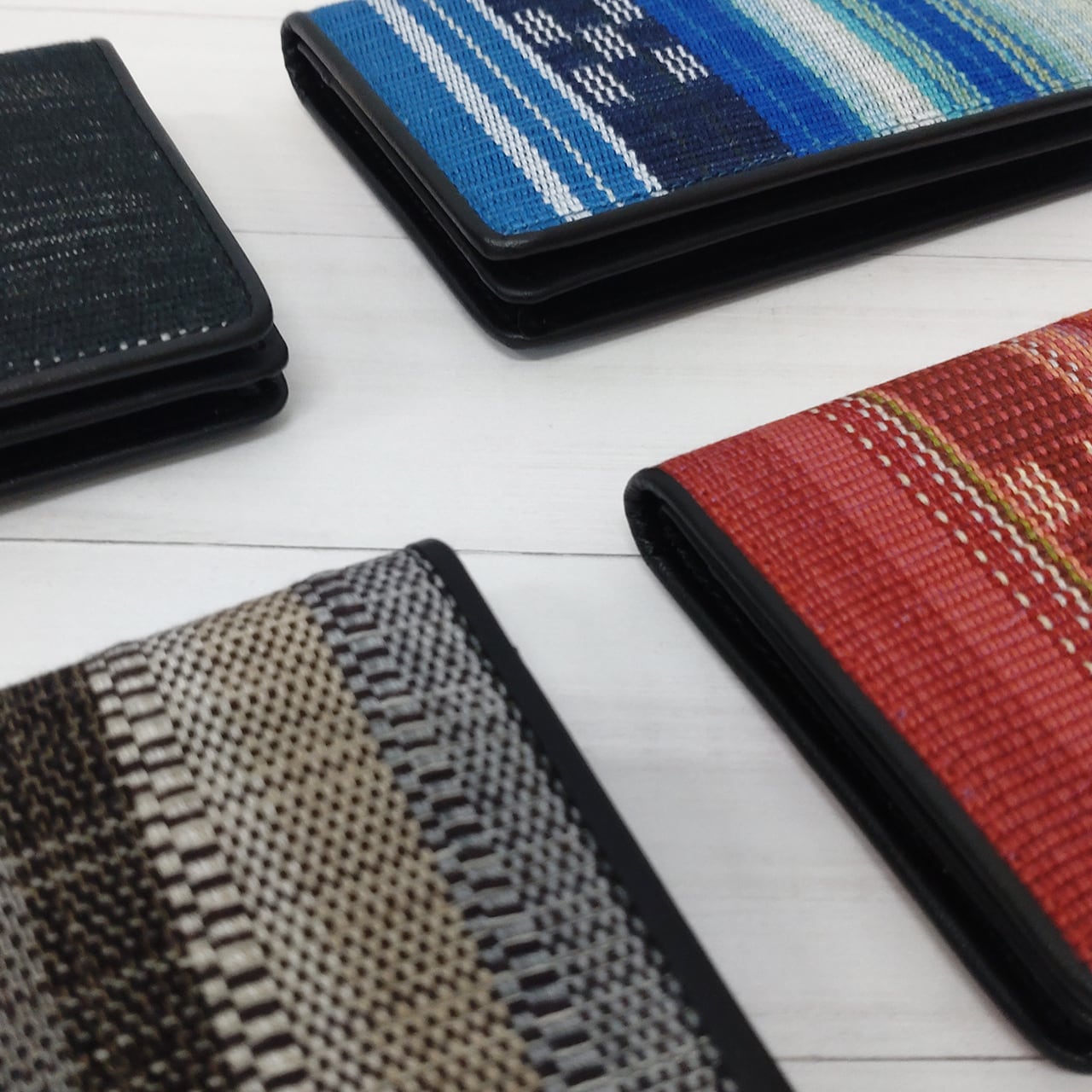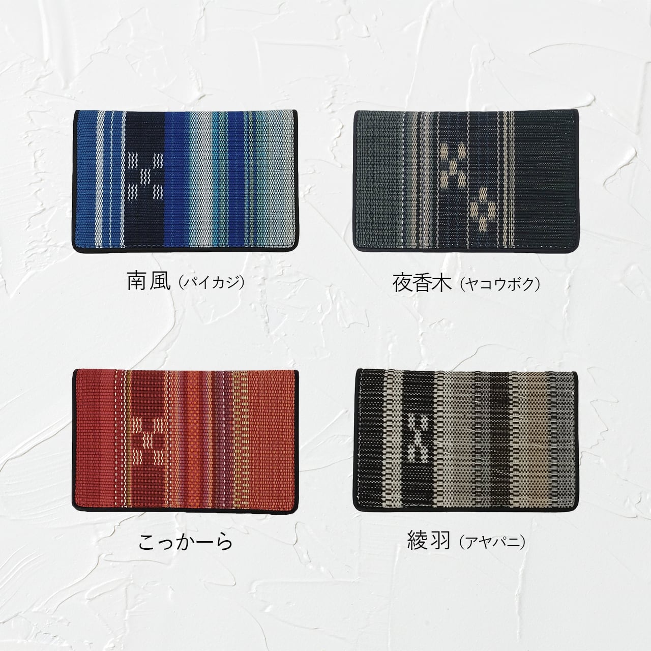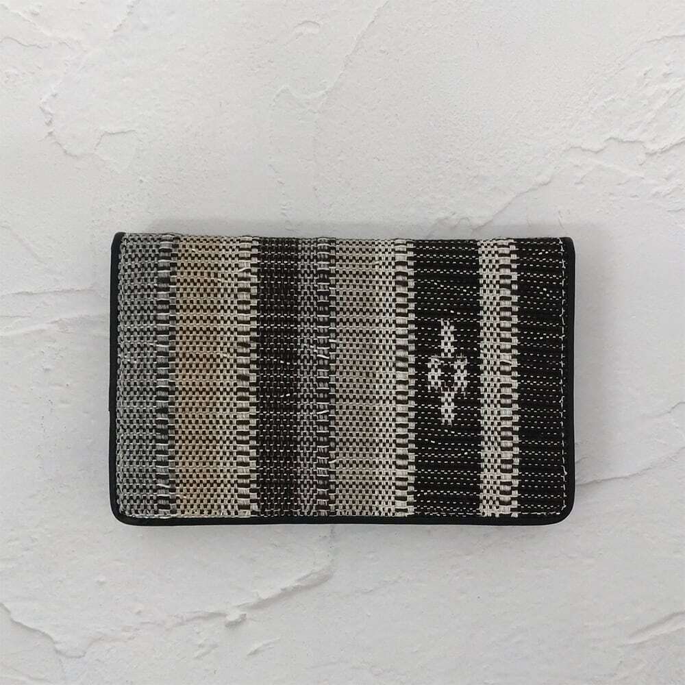 手織りの風合いが目を引く名刺入れ。カード入れが3箇所あり、うち1箇所にはマチが付いています。