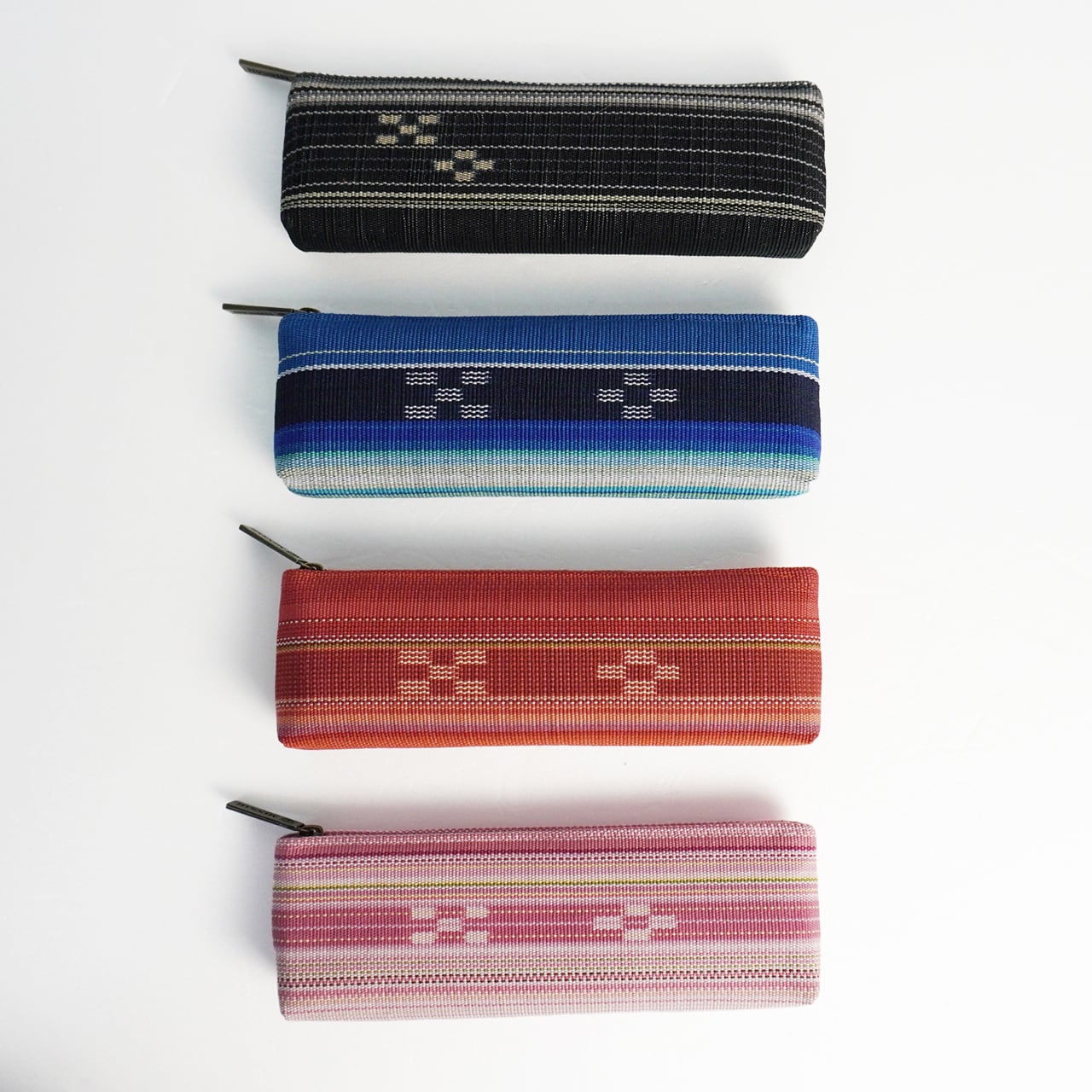 八重山みんさー織の最大の特徴である五つと四つの絣柄には、「いつ(五)の世(四)までも末永く…」という願いが込められていて、職人の手作業により約30もの工程を経て製作された国指定の伝統工芸品です。