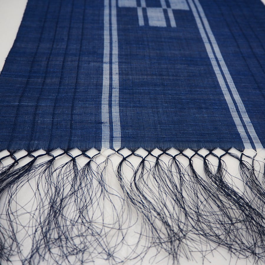 八重山みんさー織の最大の特徴である五つと四つの絣柄には、「いつ(五)の世(四)までも末永く…」という願いが込められていて、職人の手作業により約30もの工程を経て製作された国指定の伝統工芸品です。