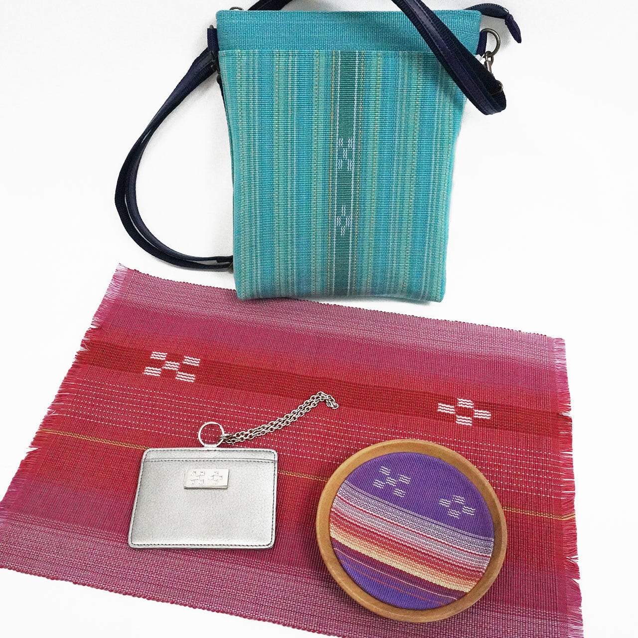 ちょっとしたお出かけにぴったりなデイリーポシェット、スワロフスキーのクリスタルブローチと裏綿の手織りみんさー織がシンプルながらも上品な印象のパスケースなどが入った福袋です。