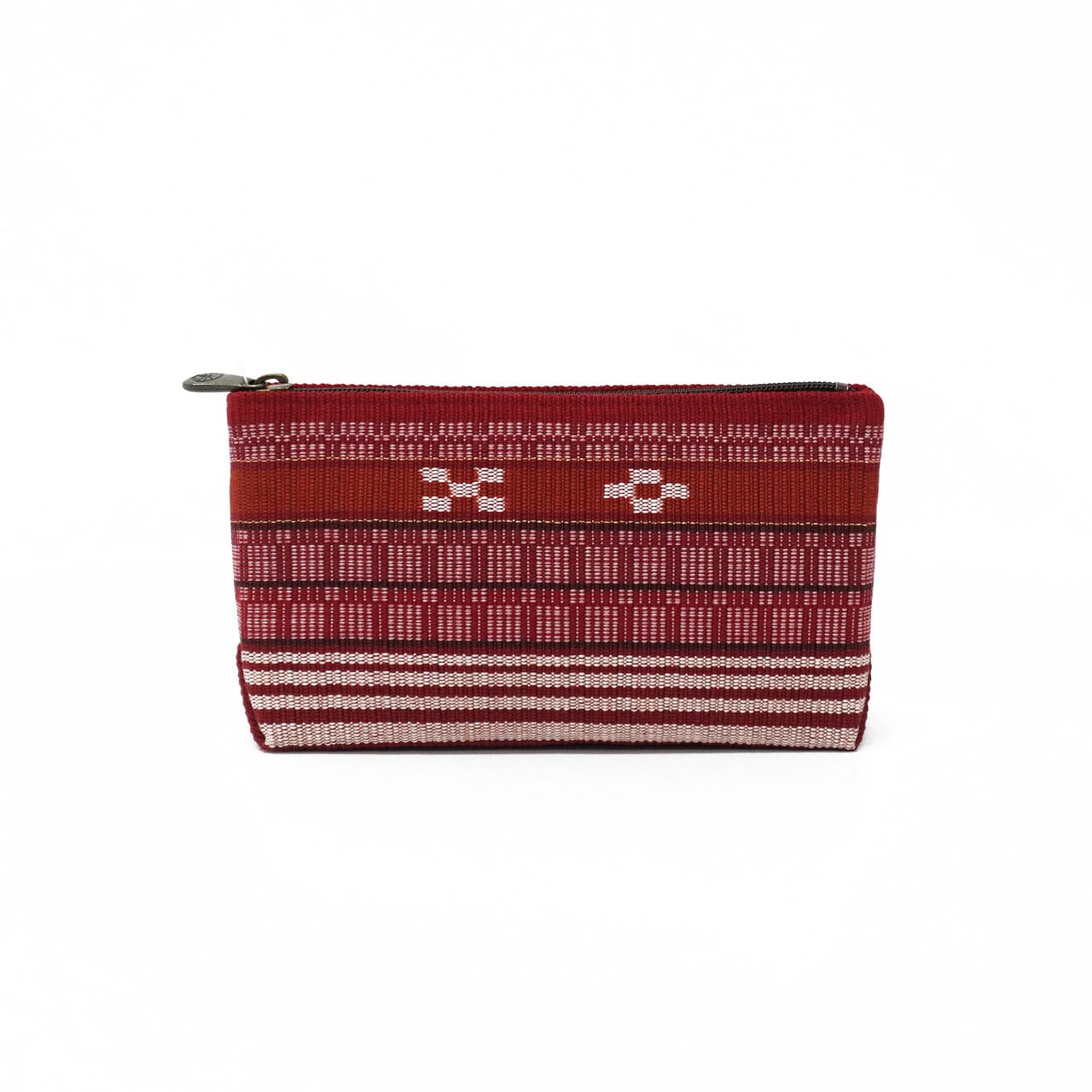 ポイントに金のラメ糸を使用し、手の込んだ織り方で織り上げられた生地を使用したポーチです。